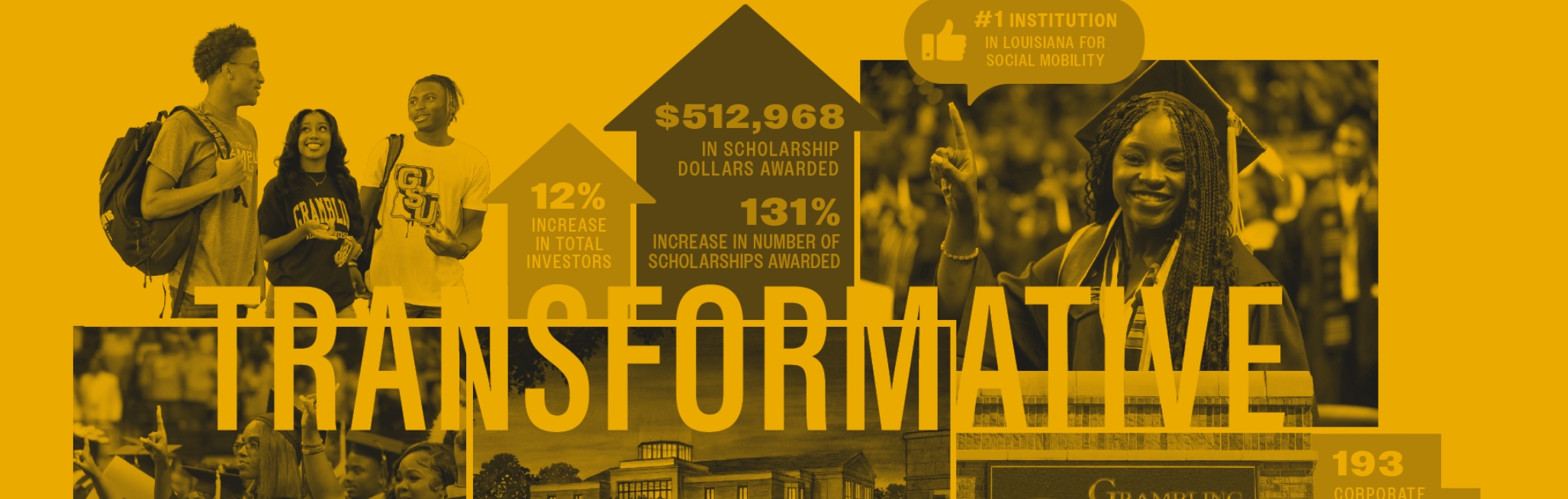 Our momentum is fueled by the collective strength of our GramFam—students who rise to every challenge, faculty and staff who drive excellence, alumni who champion our mission, and partners who believe in what’s possible here. Together, we are creating opportunities that prepare the next generation of leaders and position Grambling State as a model of innovation and resilience in higher education.